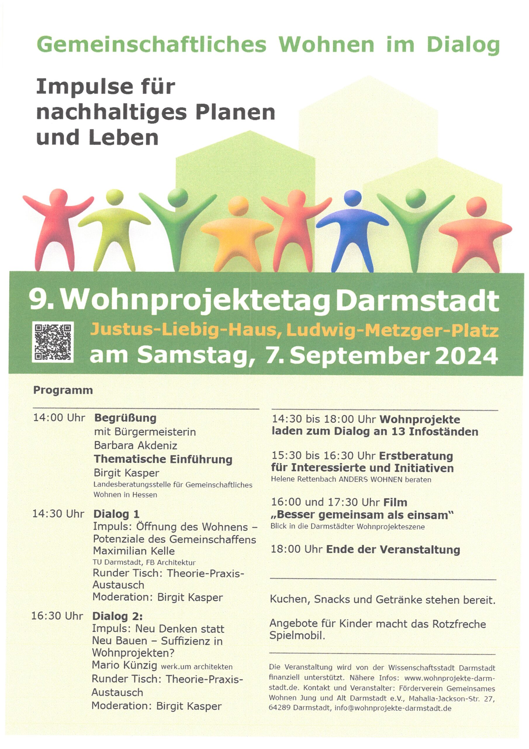 Am 7. September findet der 9. Wohnprojektetag Darmstadt statt. Mit Vorträgen, Diskussions- und Austauschrunden, Informationsständen und viel mehr können Sie sich über gemeinschaftliches Wohnen informieren und aktiv teilnehmen. Die Veranstaltung findet im Justus-Liebig-Haus (Große Bachgasse 2) von 14 bis 18 Uhr statt.