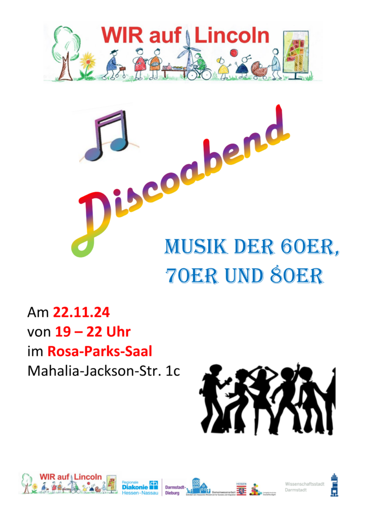 Musik lieber aktiv erleben? Parallel findet im Rosa-Parks-Saal (Mahalia-Jackson-Str. 1C) von 19 bis 22 Uhr ein Discoabend mit Musik aus den 60er, 70er und 80er Jahren statt.