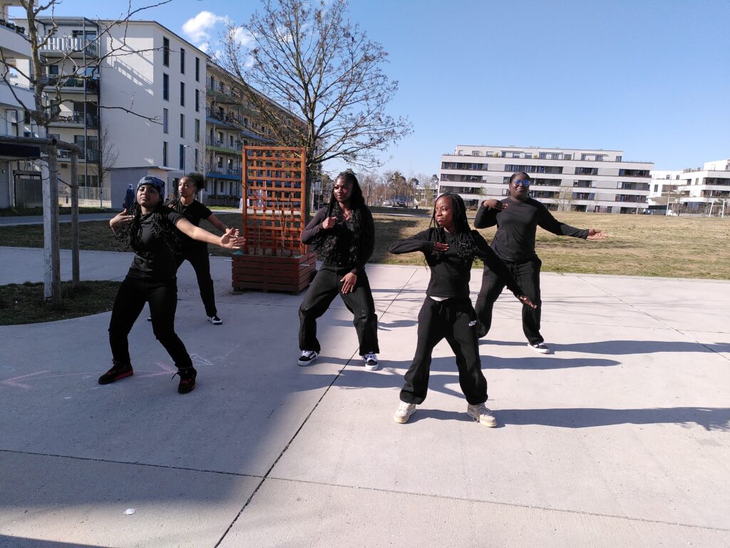 Bisher waren immer Montags im Rosa-Parks-Saal der Lincoln-Siedlung AfroBeat-Klänge zu hören, ab nächste Woche wird mittwochs geprobt (Treffpunkt: 16:30 Uhr am JugendKlub Lincoln-Siedlung): Unter der Leitung von Tänzerin Jennifer Owusu erlernen dort Jugendliche AfroBeat Tanzschritte. Nun zeigten die Mädchen ihr Können zum ersten Mal öffentlich in der Lincoln-Siedlung.