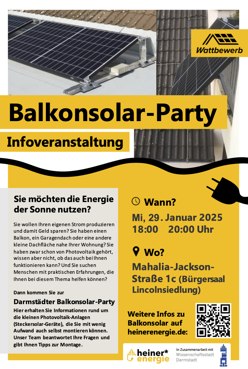 heiner*energie bietet eine Informationsveranstaltung zum Thema Kleine Photovoltaik-Anlagen, auch Steckersolar-Geräte genannt, an. Diese können mit wenig Aufwand selbst montiert werden. Das Team beantwortet Fragen und gibt Tipps zur Montage.