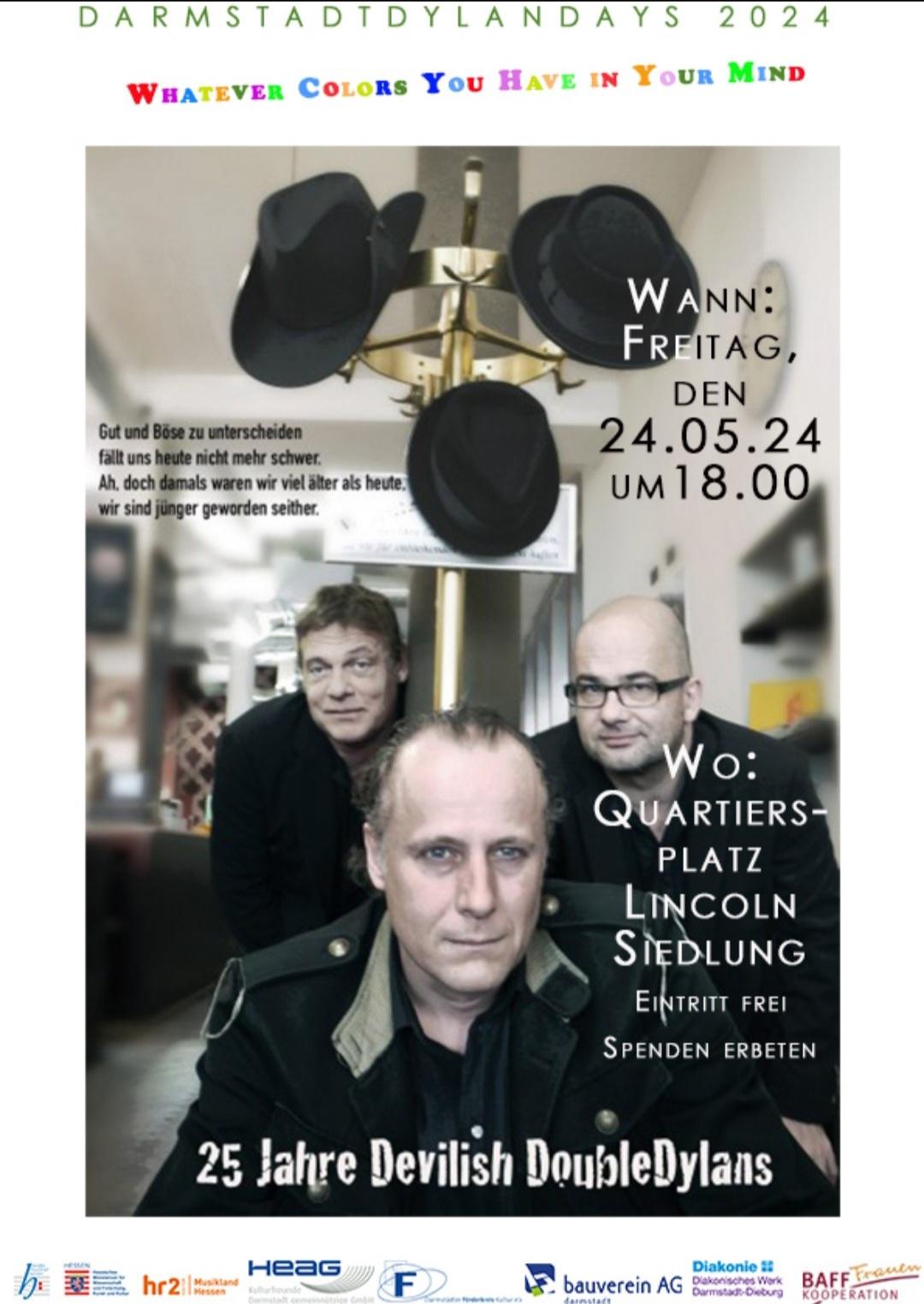 Im Zuge der Veranstaltung geben die DoubleDylans aus Frankfurt ein Konzert auf den Quartiersplatz (aufgrund der Wettervorhersage) im Café Lincoln anlässlich des 83. Geburtstag von Bob Dylan. Die Band feiert dieses Jahr ihr 25 jähriges Bestehen. Sie transformieren die klassischen Dylan Lieder in eigene Versionen, oft mit deutschen Texten.