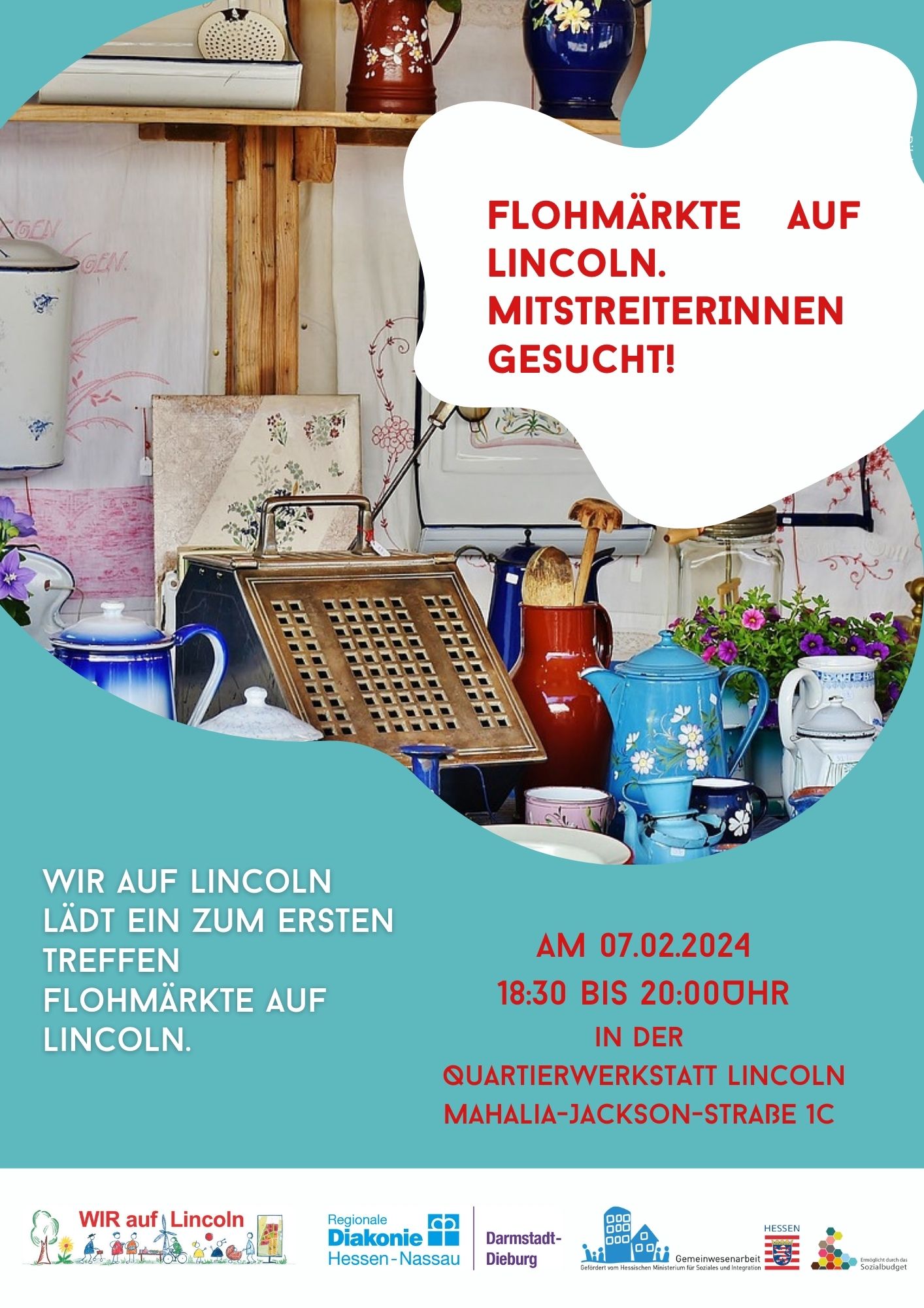 WIR auf Lincoln lädt zum ersten Treffen der Arbeitsgruppe Flohmärkte auf Lincoln. Diese Gruppe möchte weitere Flohmärkte auf Lincoln anregen und organisieren. Weitere Mitstreiterinnen und Mitstreiter sind herzlich willkommen!