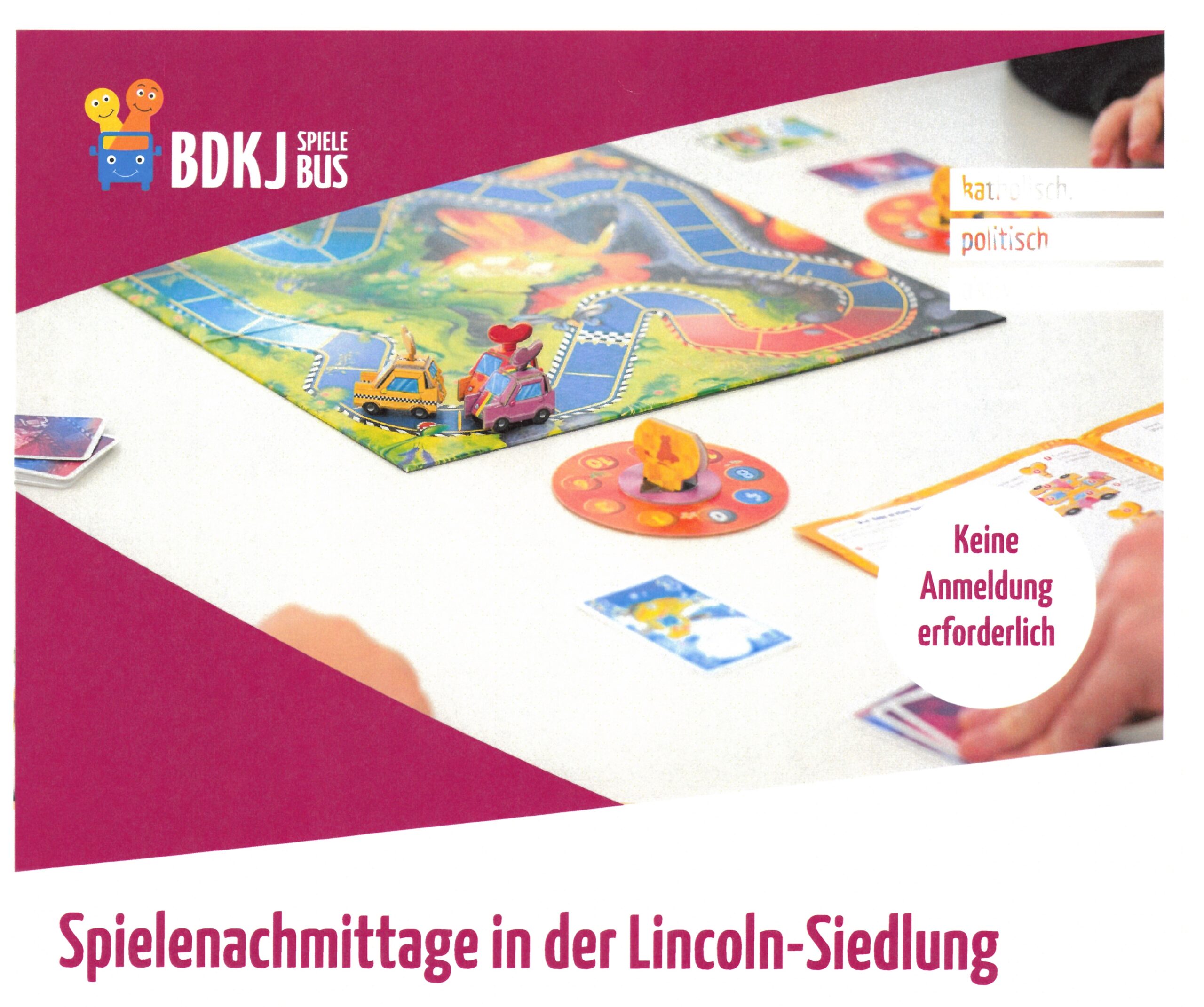 Der Spielebus des BDKJ (Bund der Deutschen Katholischen Jugend) ist in unserem Viertel und bringt viele Gesellschaftsspiele, die du direkt vor Ort spielen oder für zu Hause ausleihen kannst! Alle Kinder von 3 bis 15 Jahren sind herzlich eingeladen!