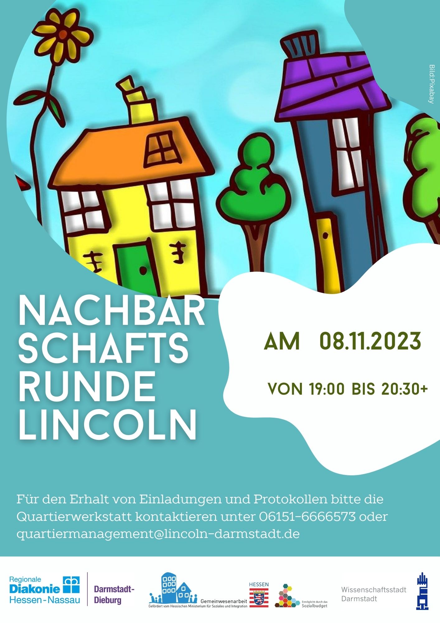 Alle Bewohner und Bewohnerinnen der Siedlung sind herzlich eingeladen zur Nachbarschaftsrunde. Bei diesem Treffen wird Aktuelles zur Lincoln-Siedlung vorgestellt und die Anliegen der Anwesenden besprochen.